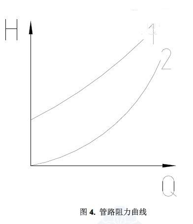 對開式系統(tǒng),管路水力曲線如圖4 中1 所示,其表達(dá)式如下: