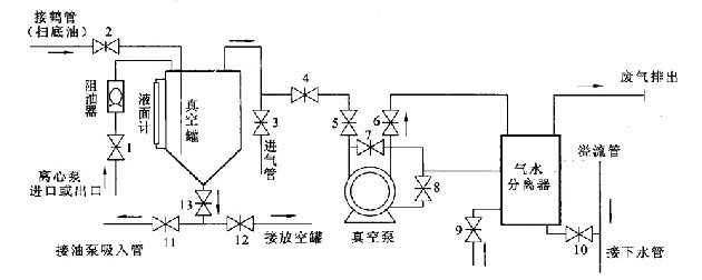 (2)真空泵抽吸油罐車底油(掃艙)操作過程