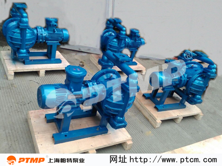 電機通過減速箱帶動左右兩端柱塞上面的隔膜一前一后往復(fù)運動。在左右兩個泵腔內(nèi),裝有上下四個單向球閥,隔膜的運動,造成工程腔內(nèi)的容積的改變,迫使四個單向球閥交替地開啟和關(guān)閉,從而將液體不斷地吸入和排出。