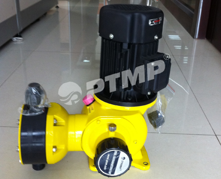 電機(jī)經(jīng)聯(lián)軸器帶動(dòng)蝸桿并通過蝸輪減速使主軸和偏心輪作回轉(zhuǎn)運(yùn)動(dòng),由偏心輪帶動(dòng)挺桿在導(dǎo)筒內(nèi)作往復(fù)運(yùn)動(dòng)。連 同柱塞,通過單向閥的作用使泵腔內(nèi)逐漸形成真空,吸入閥打開,吸入液體;當(dāng)柱塞向前死點(diǎn)移動(dòng)時(shí),此時(shí)吸入閥關(guān)閉 ,排出閥打開,液體在膜片的推動(dòng)下排出。在泵通過調(diào)節(jié)一定的行程的往復(fù)順還工作形成連續(xù)有壓力、定量的排放液體 。